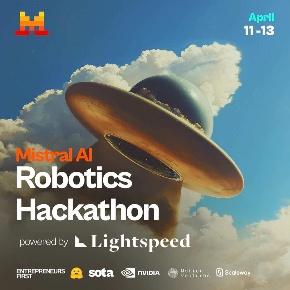 For the first time ever, teams will have access to 40+ robotic arms from Hugging Faceโs The Robot team, and build Real World Models powered by Mistral AI.